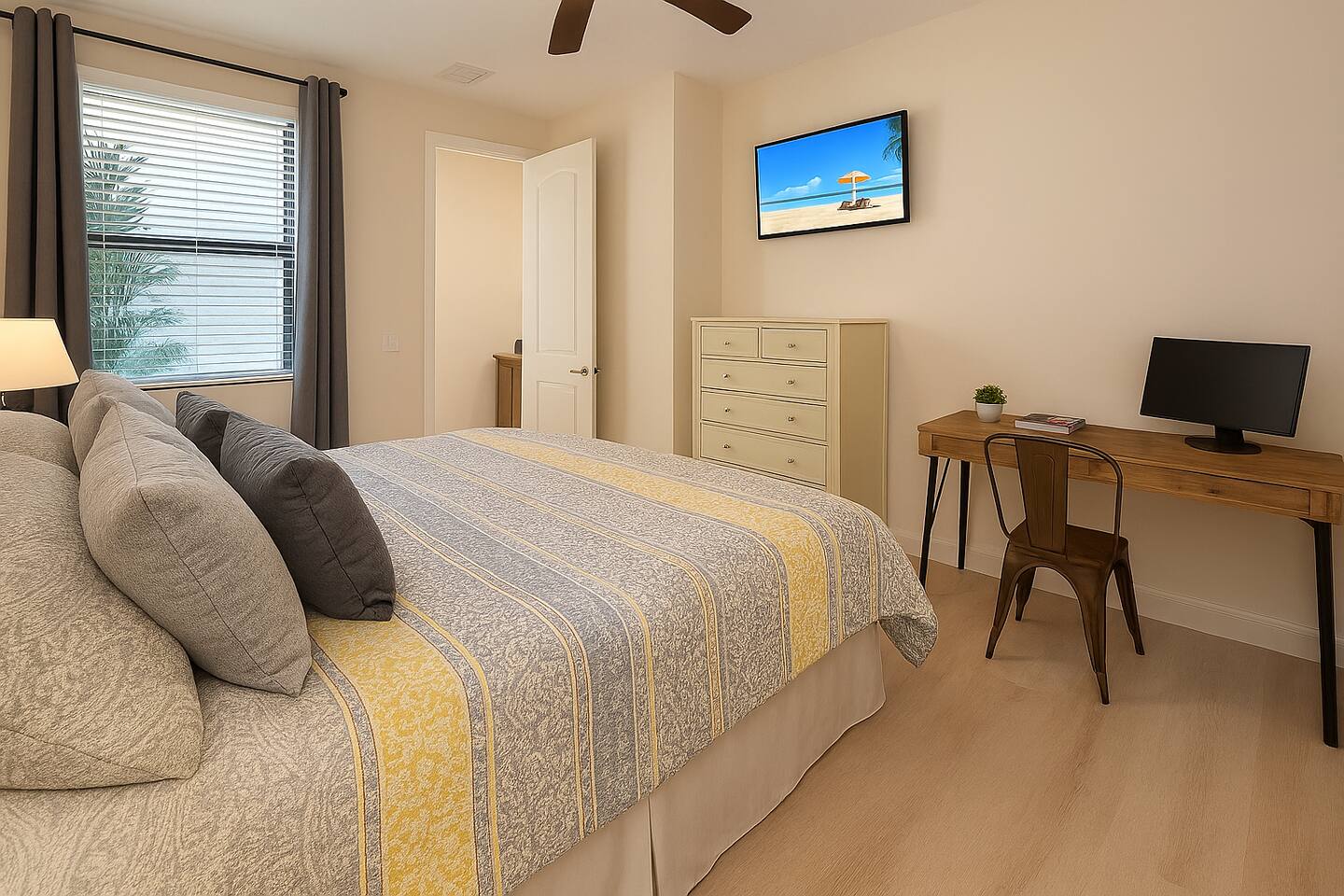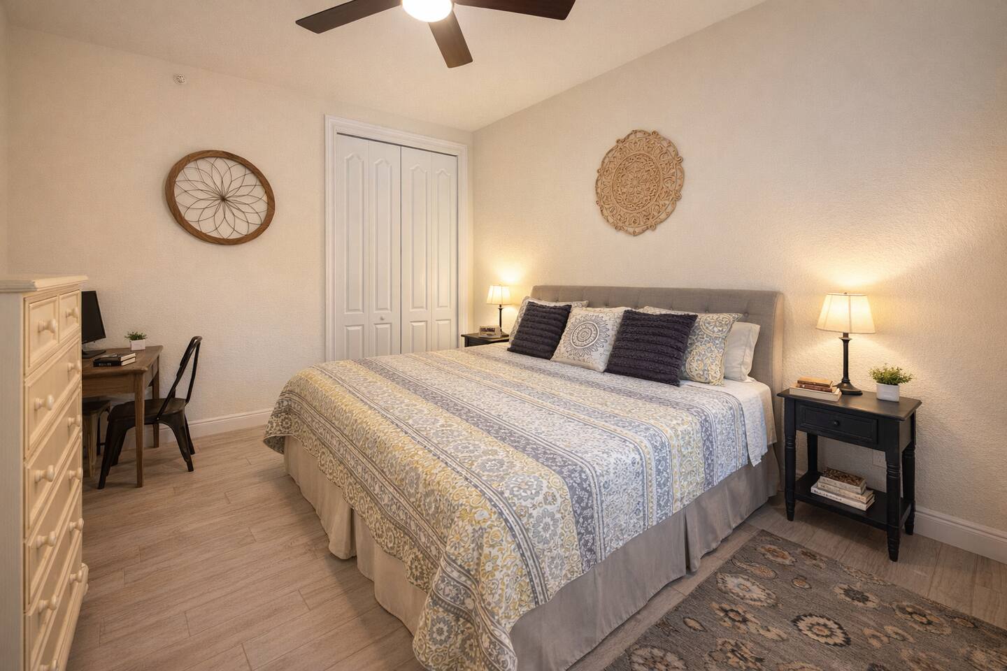 Guests will have access to the entire condo and community shared pool, excluding the cleaner's storage closet inside the condo and storage in the garage. Parking is available in front of the garage for one space, and guest spots are adjacent to each building.
